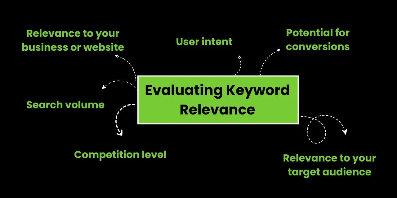 Evaluating the relevance of keywords is a crucial step in keyword research, as it helps you determine which keywords are most likely to drive targeted traffic to your website. Here are the criteria for evaluating keyword relevance:
